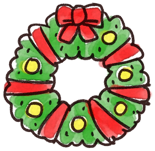 クリスマスリースのかわいい手書き商用無料イラスト素材 てがきちゃん
